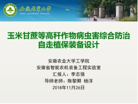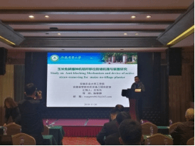2018年11月26日,2018年中国农业机械学会年会在杭州举办,实验室博士研究生王韦韦以玉米免耕播种机秸秆移位防堵机理与装置研究为主题,介绍了实验室近期在玉米免耕播种方面取得的成果。实验室硕士研究生李志强以玉米甘蔗等高秆作物病虫害综合防治自走植保装备设计为主体开展主题报告,介绍了玉米中后期病虫害轻简化防治成果。报告内容获得同行的高度认可,表示安徽农业大学和安徽省智能农机装备实验室今年为玉米免耕播种和植保做出突出贡献。