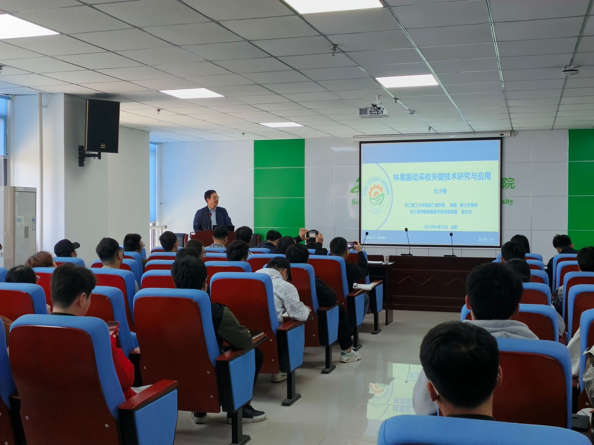杜小强教授是浙江省种植装备技术重点实验室副主任、浙江省高校中青年学科带头人、中国农业机械学会理事,长期从事智能农林装备、机械系统动力学方面研究工作。已主持及参与完成国家自然科学基金5项,发表SCI/EI收录论文近百篇次,授权发明专利40余件,并获浙江省科学技术奖一等奖1项。杜教授的报告介绍了林果振动采收关键技术和装备的研究进展和发展趋势,并结合多年的科研与实践,分享了团队高水平的研究成果和丰富的推广经验。