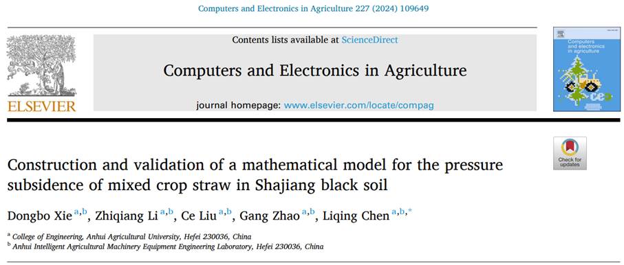 近日,我实验中心科研团队在《Computers and Electronics in Agriculture》(中科院1区TOP,IF=7.7)发表题为 “Construction and validation of a mathematical model for the pressure subsidence of mixed crop straw in Shajiang black soil” 的研究论文。该研究围绕秸秆还田条件下沙江黑土力学特性发生变化、传统土壤沉陷模型难以准确表征的问题,构建了一种适用于含秸秆土壤的压力—沉陷数学模型,显著提升了农田土壤承载能力预测的准确性。