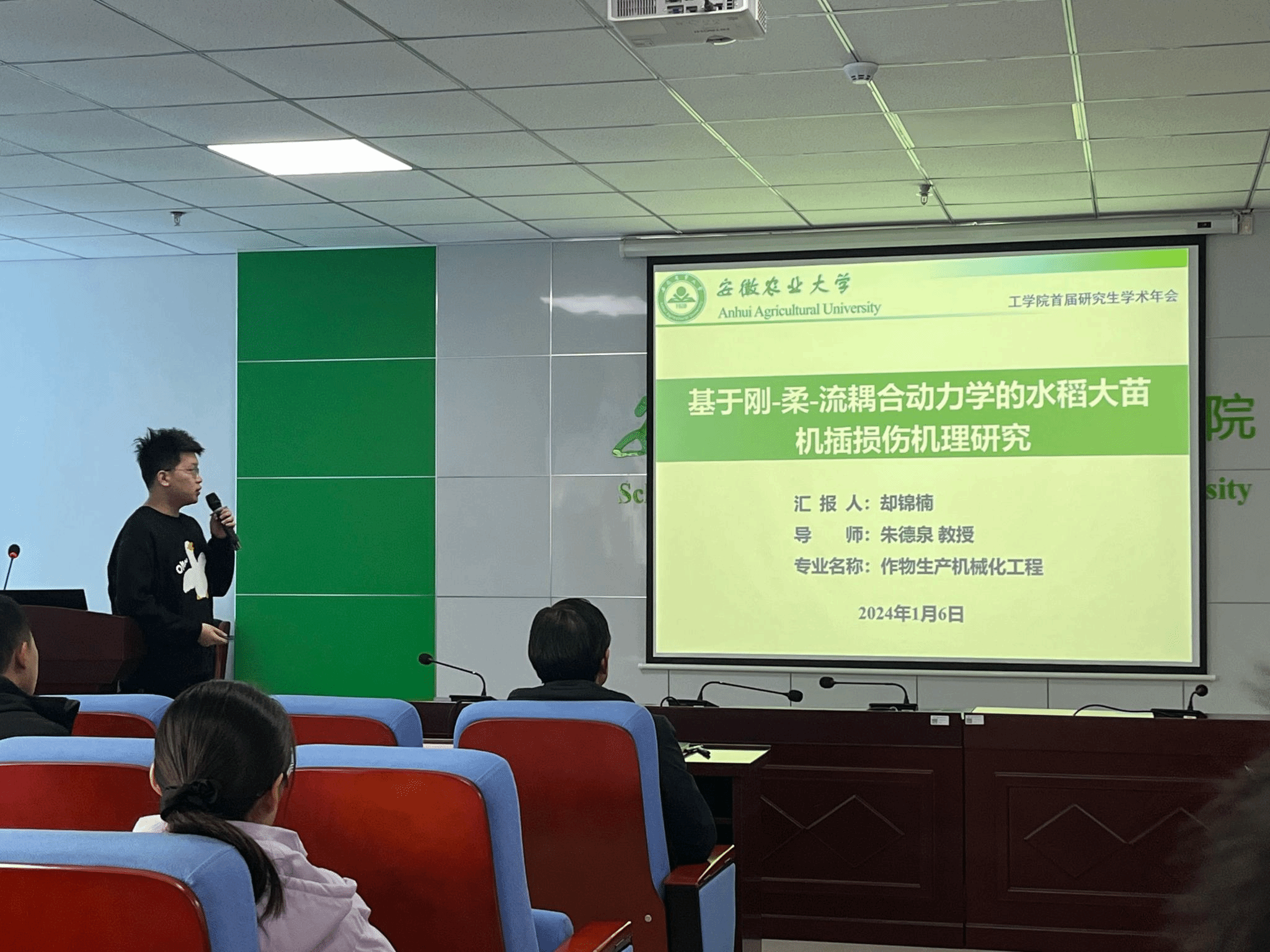 本网讯 1月6日,由校研工部、研究生院、科技处、工学院、安徽省智能农机装备工程研究中心等单位主办,工学院农业工程研究生党支部与机械工程研究生党支部协办的工学院研究生学术论坛在我校中西部大楼562报告厅顺利举办。研工部副部长(主持工作)姜家生,科技处副处长叶辉,工学院党委书记张国学、院长朱德泉、副书记张璐、副院长杨洋以及200余名学院师生参加,开幕式由朱德泉主持。